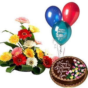 3 Balloons+ Chocolate Cake + Mix Gerberas Basket3 Balloons+ Chocolate Cake + Mix Gerberas Basket |
