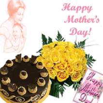 24 orange or yellow roses bunches and mother's day card with chocolate cake.