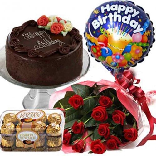 Birthday Cake , 12 roses , ferrero & ballon