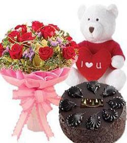 DelightfulA delightful living gift suitable for any occasion 24 inch teddy Bear give hugging feelings with I LOVE PILLOW, chocolate cake and 12 red roses bunch type express your love, a perfect gift to express your emotions. |
