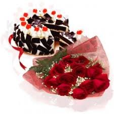 dozen roses w/cake1dozen roses w/ black forest cake |
