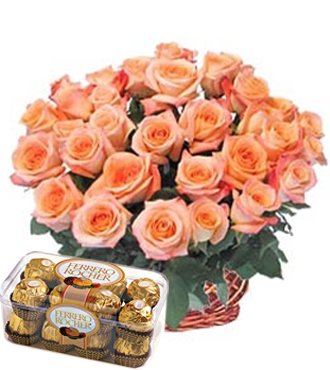 36 orange roses Basket with & Ferrero 200g