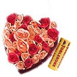 Let your sweetheart/ spouse/ loved ones know how much you miss 'em. (24 Orange & 12 red roses with tobleron (6 x 50gm) chocolate.)