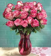 A romantic message that's sure to touch your beloved's heart. 24 peach roses in a vase.